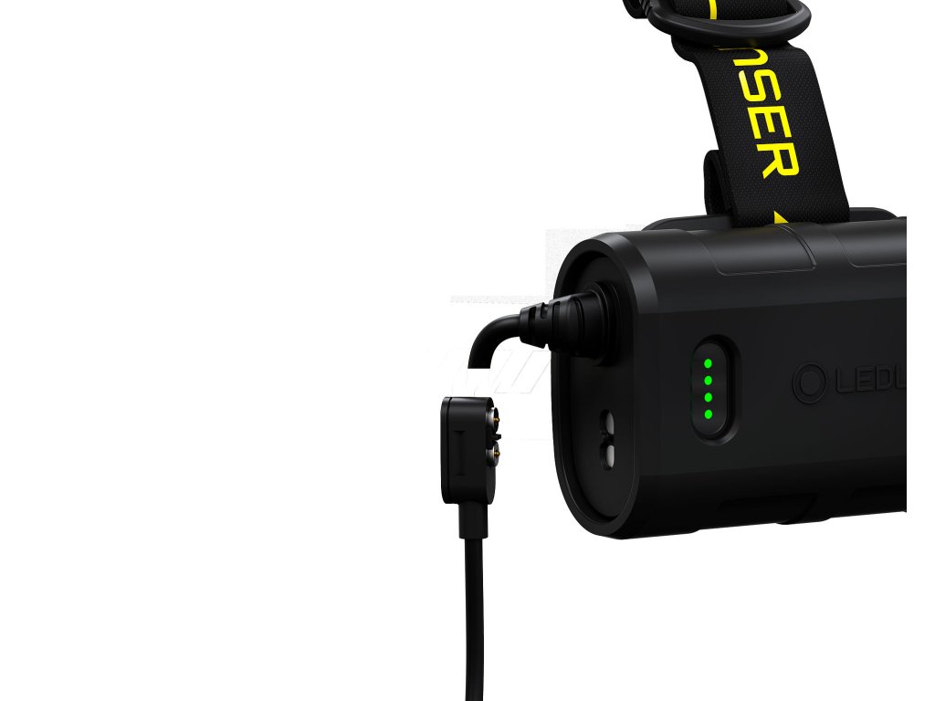 Svítilnu lze dobíjet pomocí nabíječky s odolným magnetickým konektorem.