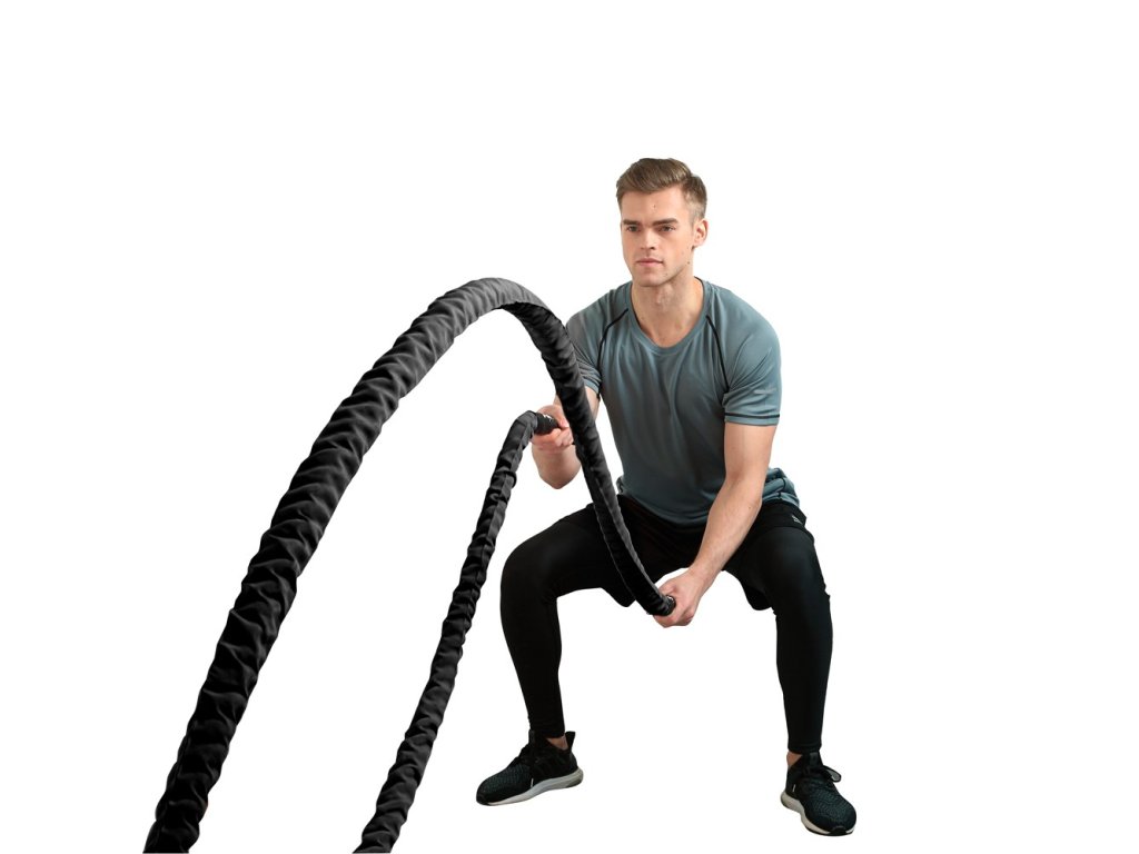 Nejlepší volba pro tělocvičny i venkovní prostory. Délka 15m; průměr lana 35mm. Těžké posilovací lano se zakončením pro pevné uchopení, vhodné k posilování horní části těla.