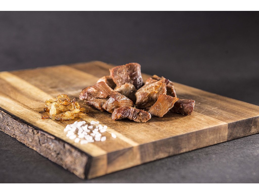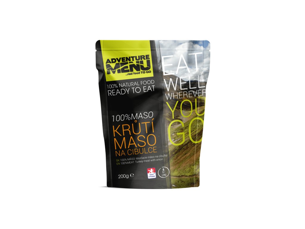 | Složení: | Krůtí stehenní maso (95%), cibule, sůl, pepř. |