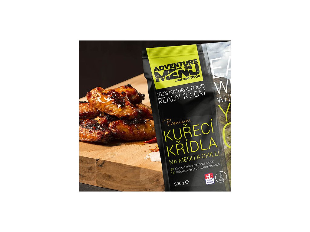 | Složení: | Kuřecí křídla (97%), med (1,4%), sůl (jedlá kamenná sůl, jodičnan draselný), chilli (0,6%). |
