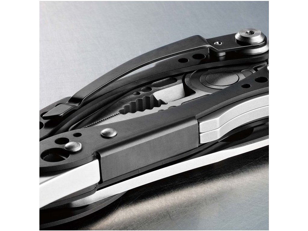| Počet nástrojů: 7+2 bity: | Funkce: 1) Kleště s jehlovou špičkou2) Utahovací kleště3) Štípací kleště tvrdých drátů4) Štípací kleště měkkých drátů5) Nůž s rovnou čepelí z oceli 154CM6) Karabina/otvírák lahví7) Velký adaptér na bity |