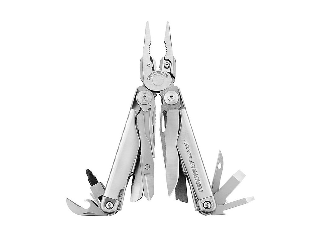 Leatherman SURGE je vždy tam, kde je potřeba pořádného pracanta. S 11,5 centimetry (ve složeném stavu) a s 335 gramy ocele je jedním z největších multitoolu vůbec. V mohutném těle se skrývá 21 nástrojů, které asi nebudete chtít nosit po kapsách, ale chybět by neměly například v autě, na motorce, či v domácí dílně. Multitool obsahuje totiž kromě tradičních multifunkčních kleští tak otvírák na láhve a na konzervy, sadu šroubováků včetně hodinářského, šídlo s otvorem, dva nože z prémiové oceli 420HC, pilku s dvojřadými zuby, kterou můžete vyměnit za pilník s diamantovou vrstvou. Neocenitelným pomocníkem jsou ostré nůžky s pružinovým mechanismem. Leatherman SURGE je zkrátka kompletní sadou základního nářadí a neměl by chybět ve výbavě žádného řemeslníka, stavaře, či montéra. Dostání také v černé barvě.