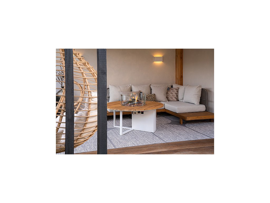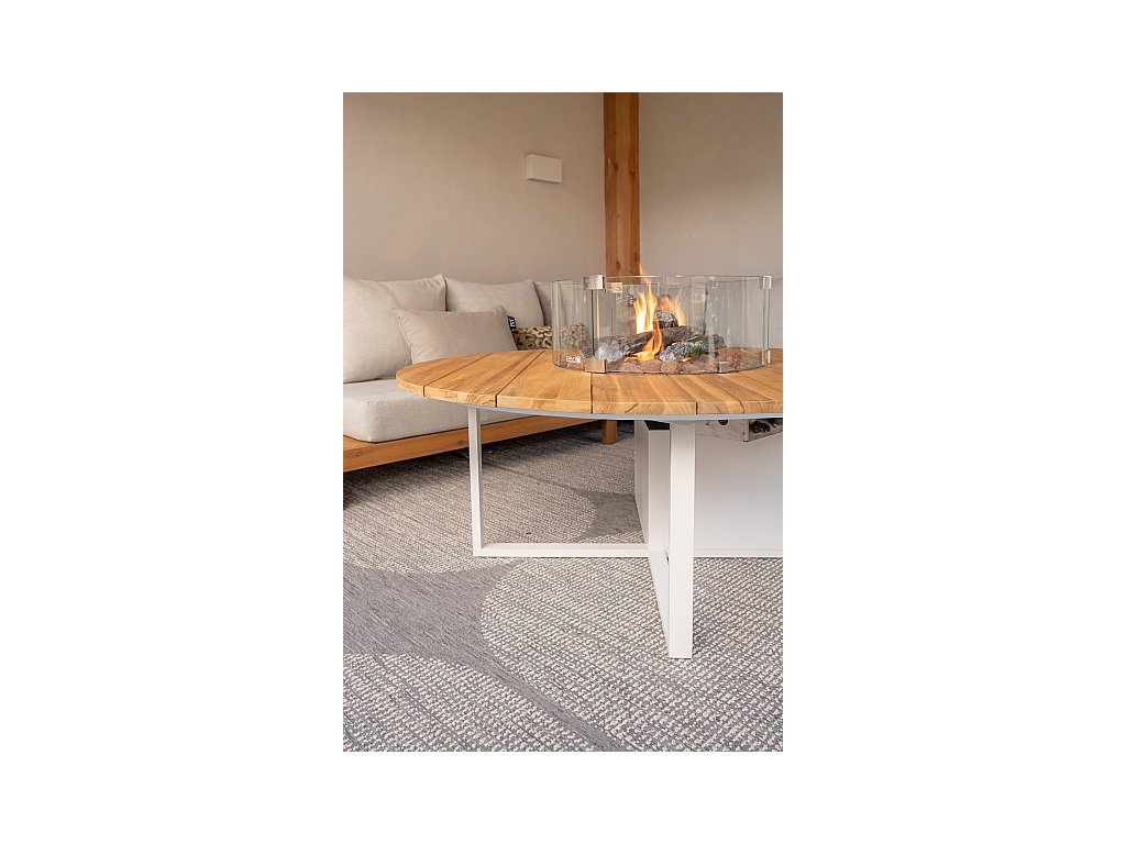 Stůl s plynovým ohništěm Cosiloft 120 kulatý-bílý/deska teak