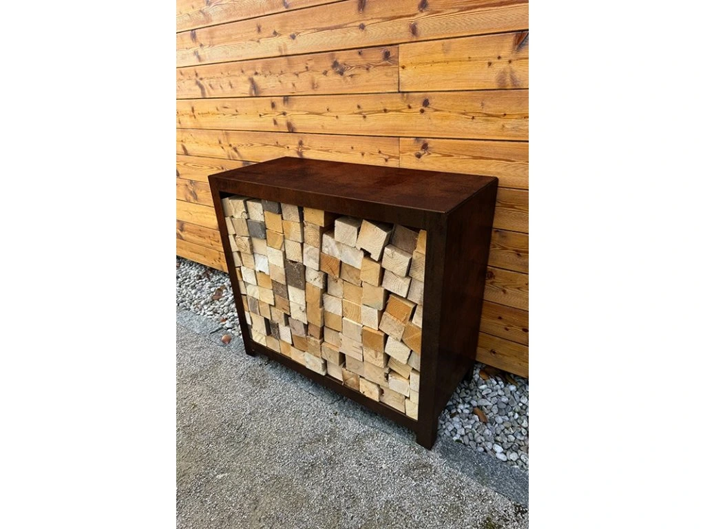 Dřevníky mohou sloužit jako solitérní prvek v zahradě, nebo se stát součástí větší kompozice – například spolu s dalšími výrobky z cortenu, se kterými designově ladí.