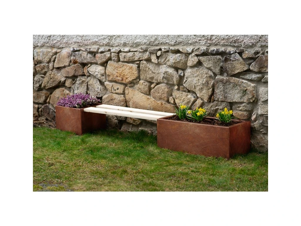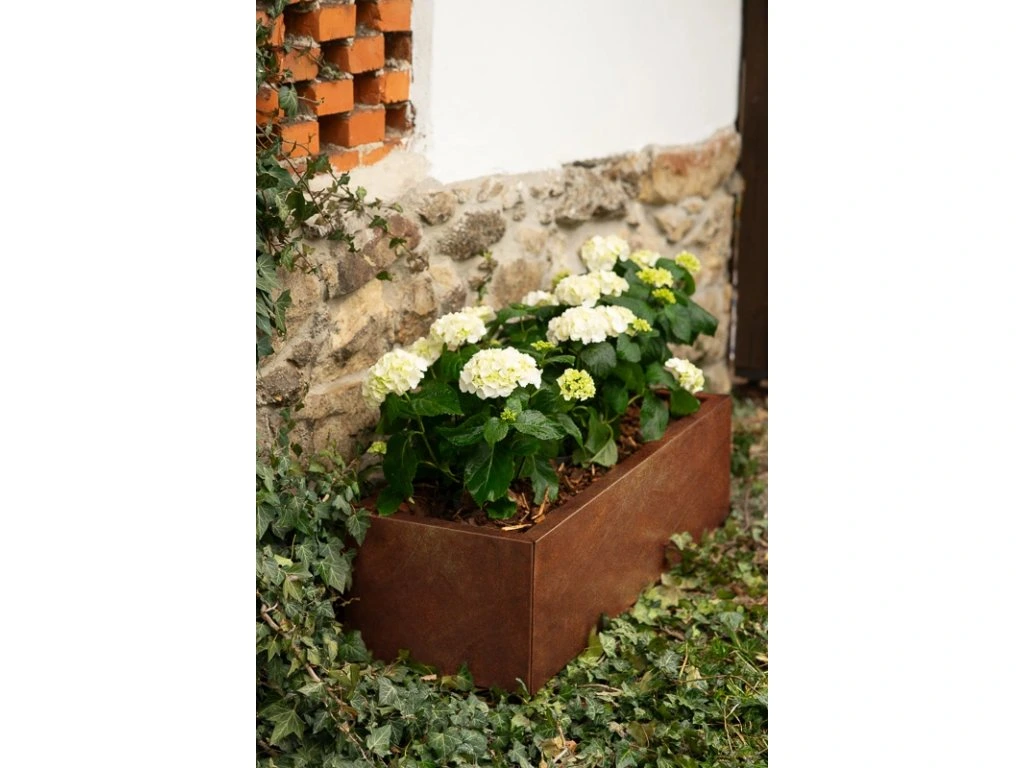 Zahradní květináč LINE je výsledkem precizní české výroby a promyšleného designu. Využívá originální švédskou ocel COR-TEN®, která v exteriéru přirozeně patinuje – bez nutnosti nátěrů nebo další údržby. Charakteristická rezavá vrstva není vadou, ale funkční ochranou, která zajišťuje dlouhou životnost i odolnost vůči dešti, mrazu a slunečnímu záření.