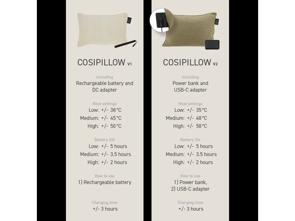 Všechny polštáře Cosipillows jsou šetrné k životnímu prostředí, protože vyhřívací polštáře zahřívají přímo vaše tělo, aniž by docházelo k úniku tepla do (venkovního) vzduchu. Tím se šetří teplo a energie, protože není třeba zvyšovat teplotu na termostatu. Polštáře Cosipillows mají tři nastavení teploty: nízká 38 °C, střední 45 °C a vysoká 50 °C. Nastavení tepla zvolíte pomocí ovládacího tlačítka na polštáři. Stisknutím tlačítka se aktivuje infračervené topné těleso, takže si můžete užít večer v příjemném teple, které polštář Cosipillow poskytuje.